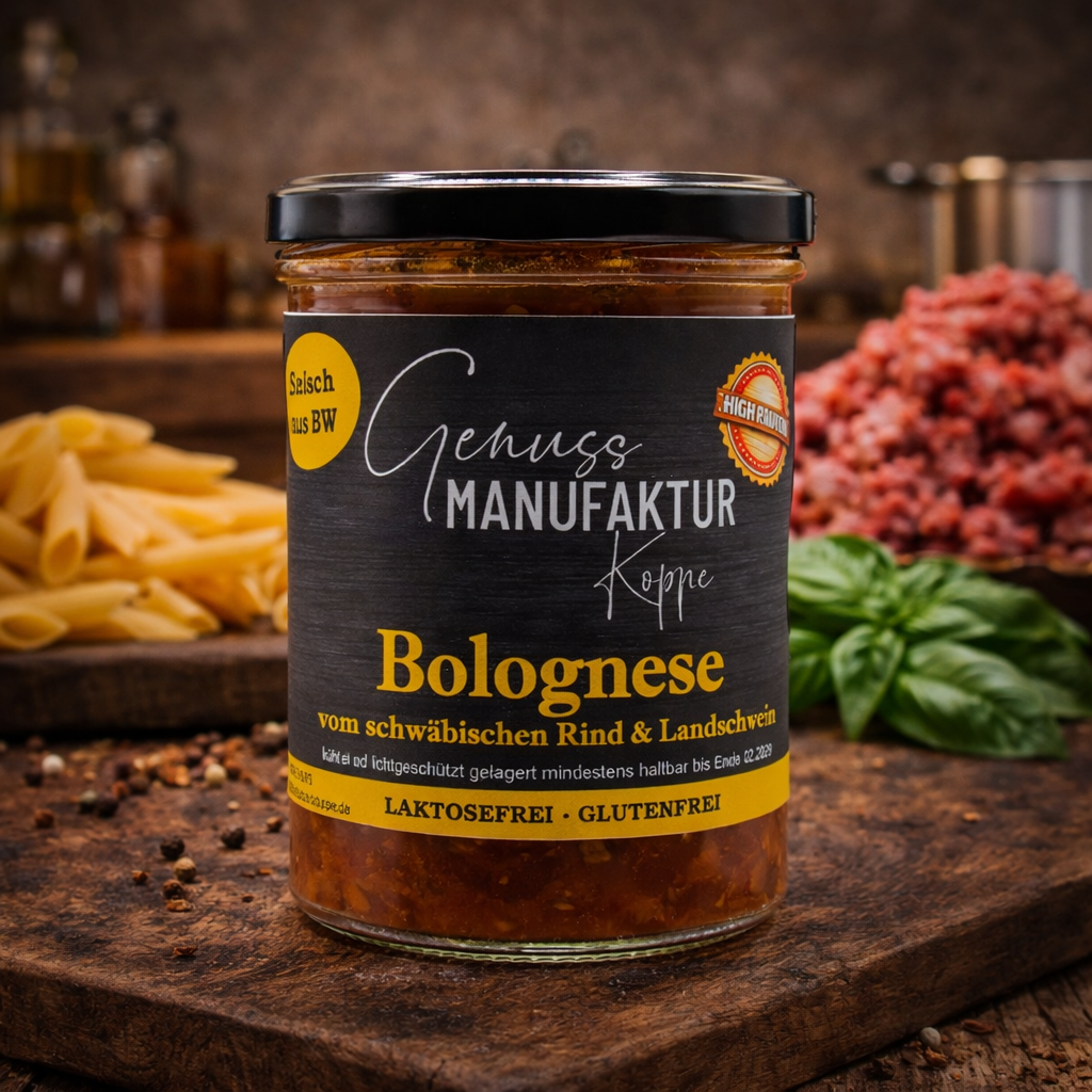 | Inhaltsstoffe | Tomatensoße (Tomaten), Tomatenmark, Gemüsebrühe, Zwiebel, Knoblauch, Kräuter der Provence, Rapsöl, Hackfleisch (vom Baden-Württemberger Landschwein & schwäbischen Rind), Gemüse (SELLERIE) |