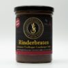 | Inhaltsstoffe | Weinbrand, Fleisch vom Baden-Württemberger SchweinTrinkwasser, Rindersud, Schweinesud, Roux (Reismehl, Palmfett, Karamellzuckersirup, Maltodextrin), Rotwein, Zwiebel, Tomatenmark, SELLERIE, Karotten, Worchestershiresauce (Trinkwasser, Branntweinessig, Zucker, Weinessig, Speisesalz, SPEISESENF (Trinkwasser, SENFSAAT, Gewürze), Gewürze, Farbstoff: Ammoniak-Zuckerkulör; Verdickungsmittel: Guarkernmehl; Aroma), Salz (Speisesalz, Trennmittel E 536), Rapsöl, H-Sahne 30%, (Stabilisator: Carrageen) |