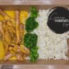 | Inhaltsstoffe | Chilisauce (fermentierte Chili, Knoblauch), Sojasauce (SOJABOHNEN, WEIZEN), Samba Olek (Chilischote, Salz, Essig)Hähnchenfilet, Wok-Gemüse (Karotten, SOJABOHNEN, Zuckererbsenschoten, Bambussprossen, Wasserkastanien, Mu-err-Pilze, Paprika), Reis |