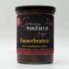 | Inhaltsstoffe | Rindfleisch vom schwäbischen Rind, Karotten, Gewürzgurken (Branntweinessig, Zucker, Salz, Dill, SENFKÖRNER, Kräuterextrakte, Gewürzextrakte), Schwarzwälderschinken (Schweinehinterschinken, Speisesalz, Gewüze, Dextrose, Konservierungsstoff: Natriumnitrat, Kaliumnitrat, Tannenholzrauch), SENF (Wasser, Senfsaaten, Branntweinessig, Gewürze), Salz (Speisesalz, Trennmittel E 536)Trinkwasser, Rindersud, Schweinesud, Roux (Reismehl, Palmfett, Karamellzuckersirup, Maltodextrin), Rotwein, Zwiebel, Tomatenmark, SELLERIE, Worchestershiresauce (Trinkwasser, Weinessig, SPEISESENF (Trinkwasser, SENFSAAT, Gewürze, Farbstoff: Ammoniak-Zuckerkulör; Verdickungsmittel: Guarkernmehl; Aroma), Trennmittel E 536), Rapsöl |